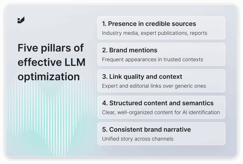 AI doesn’t select the “best” links – it chooses the most representative narrative based on mention frequency, source authority, context, and consistency.