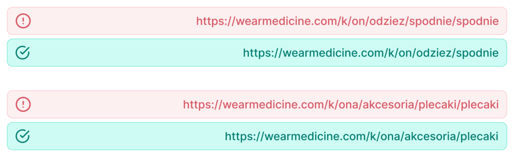 Example of incorrect URL: https://wearmedicine.com/s/sukienki-na-zime/ona/odziez