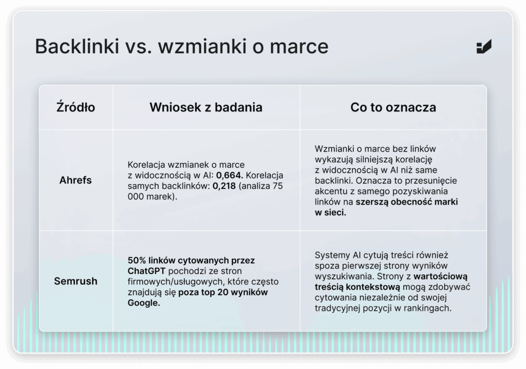 - Co ujawniają najnowsze badania o backlinkach vs. wzmiankach o marce w wyszukiwarkach AI