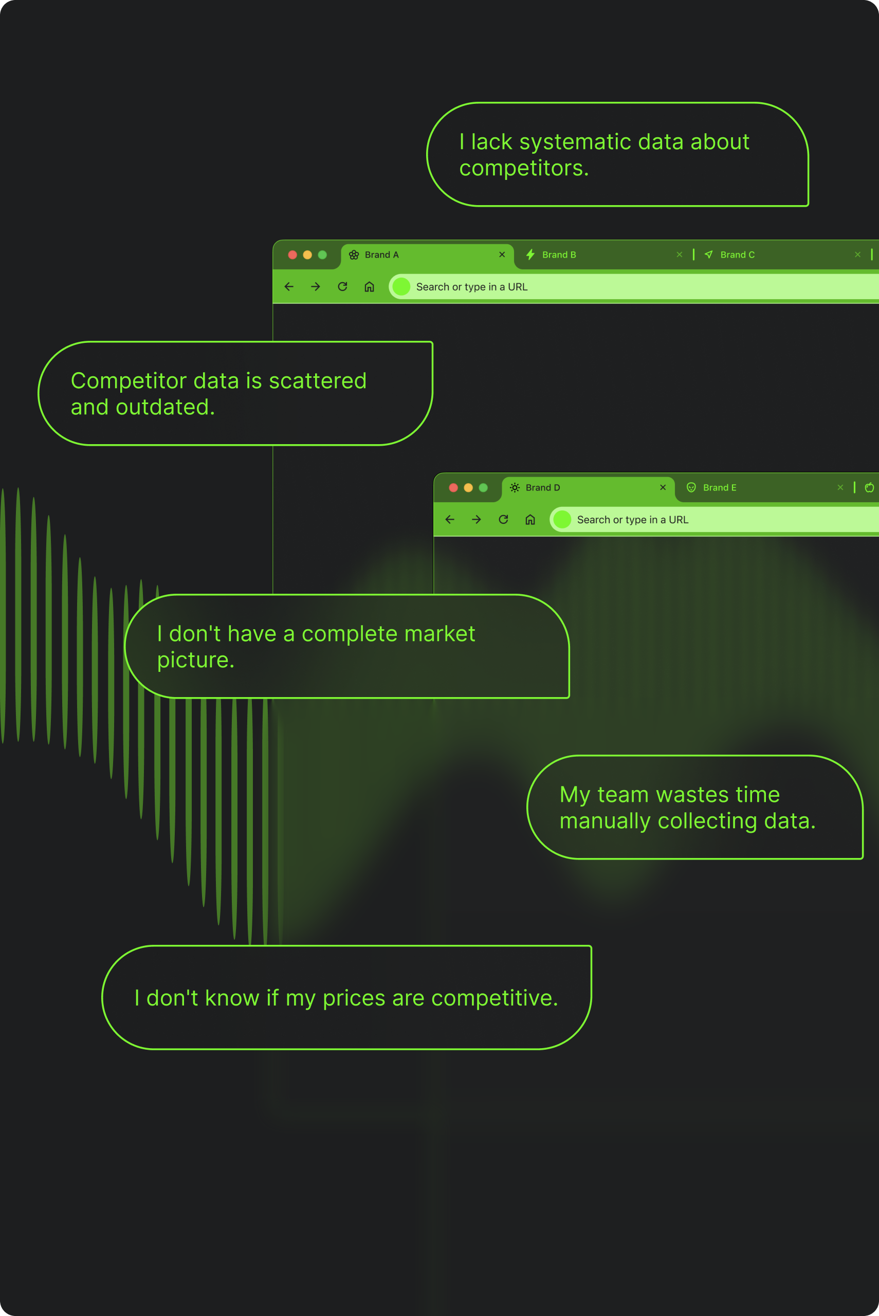 Grow monitoring as your business grows. Start with the top competitors and core products. Expand to adjacent markets when ready.
