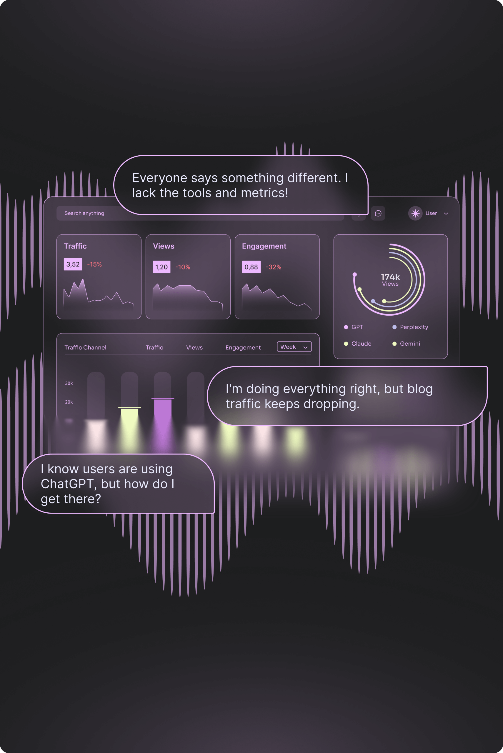 No way to measure AI visibility or content semantic quality.